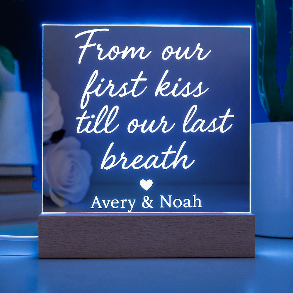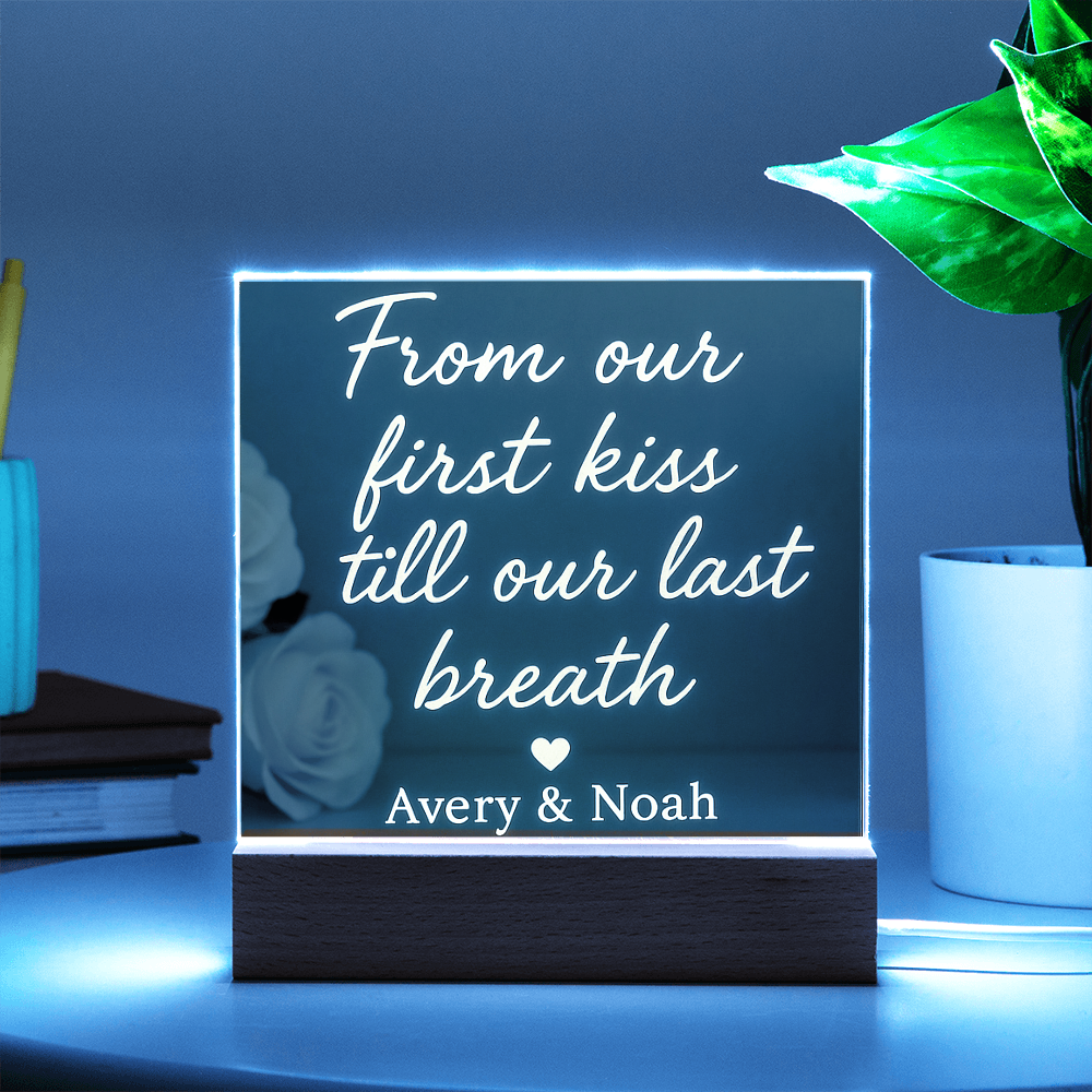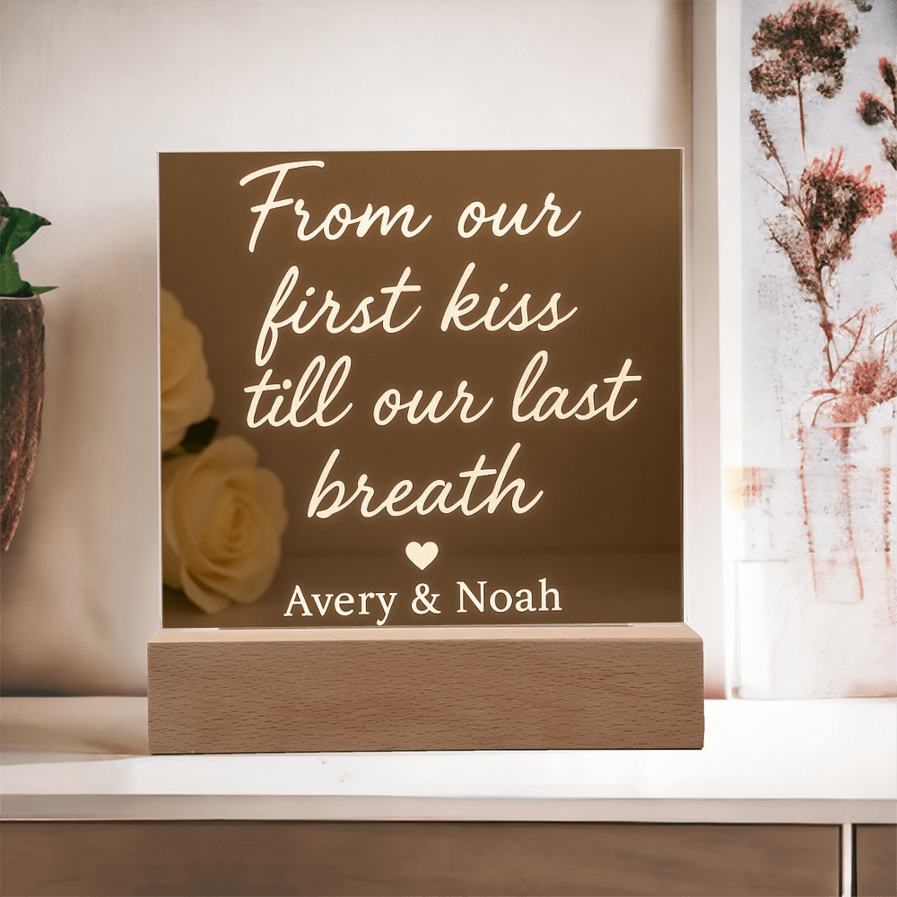 Acrylic Square Plaque - From our first kiss till our last breath ❤️